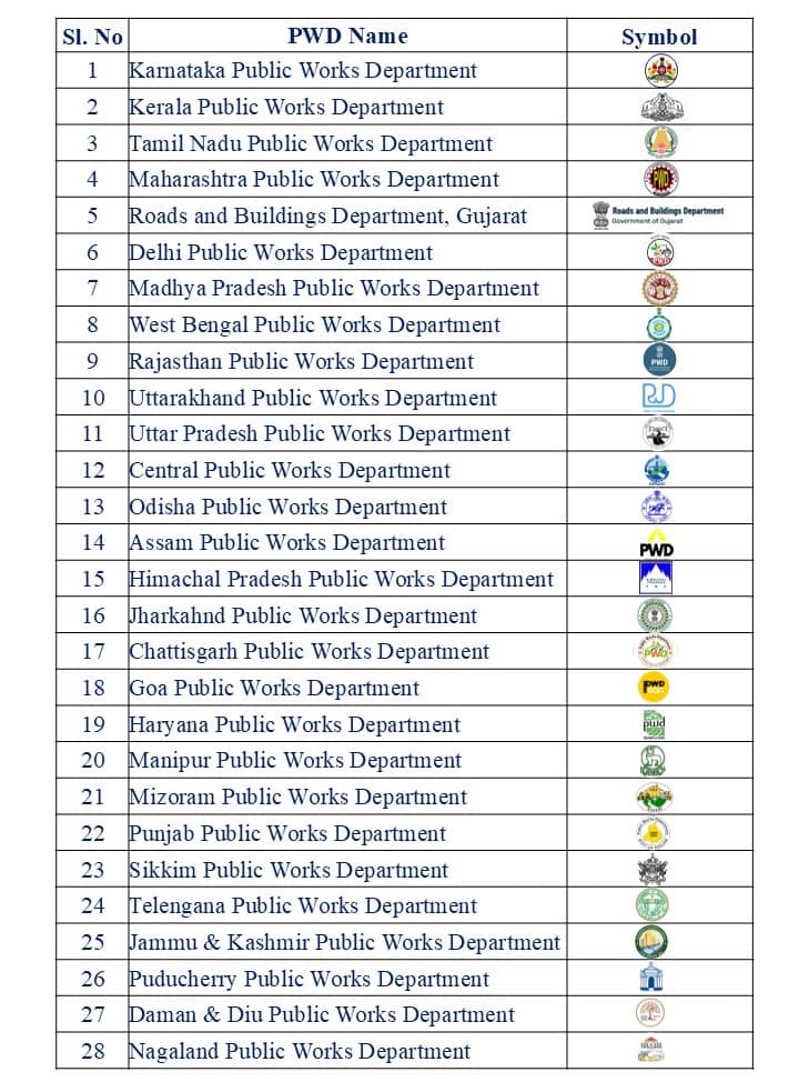 | Sl.no | State PWD | Website |